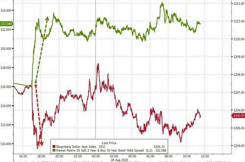 由于不确定特朗普罢免美联储理事库克的努力能否成功,周二外界对库克被解雇消息的反应其实整体还算平淡。不过,美国国债收益率曲线的关键部分仍趋于陡峭化——短期国债收益率因货币政策即将放松的预期增强而下降,而长期国债收益率则因对大幅降息可能导致长期通胀上升的担忧而上升。